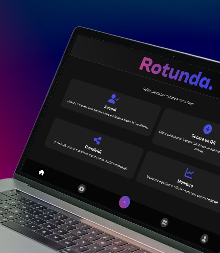Rotunda è la piattaforma digitale che ridefinisce le promozioni: crea, gestisci e condividi offerte personalizzate mediante codici QR unici. Con un'interfaccia intuitiva e tecnologie all'avanguardia, Rotunda trasforma ogni offerta in un'opportunità di vendita, facendo sentire il consumatore speciale e incrementando il fatturato aziendale.